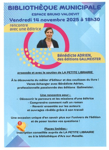 Bénédicte ADRIEN rencontre avec une éditrice des éditions GALLMEISTER