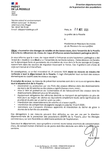 Élévation du niveau de risque relatif à l'influenza aviaire hautement pathogène de modéré à élevé. En savoir plus