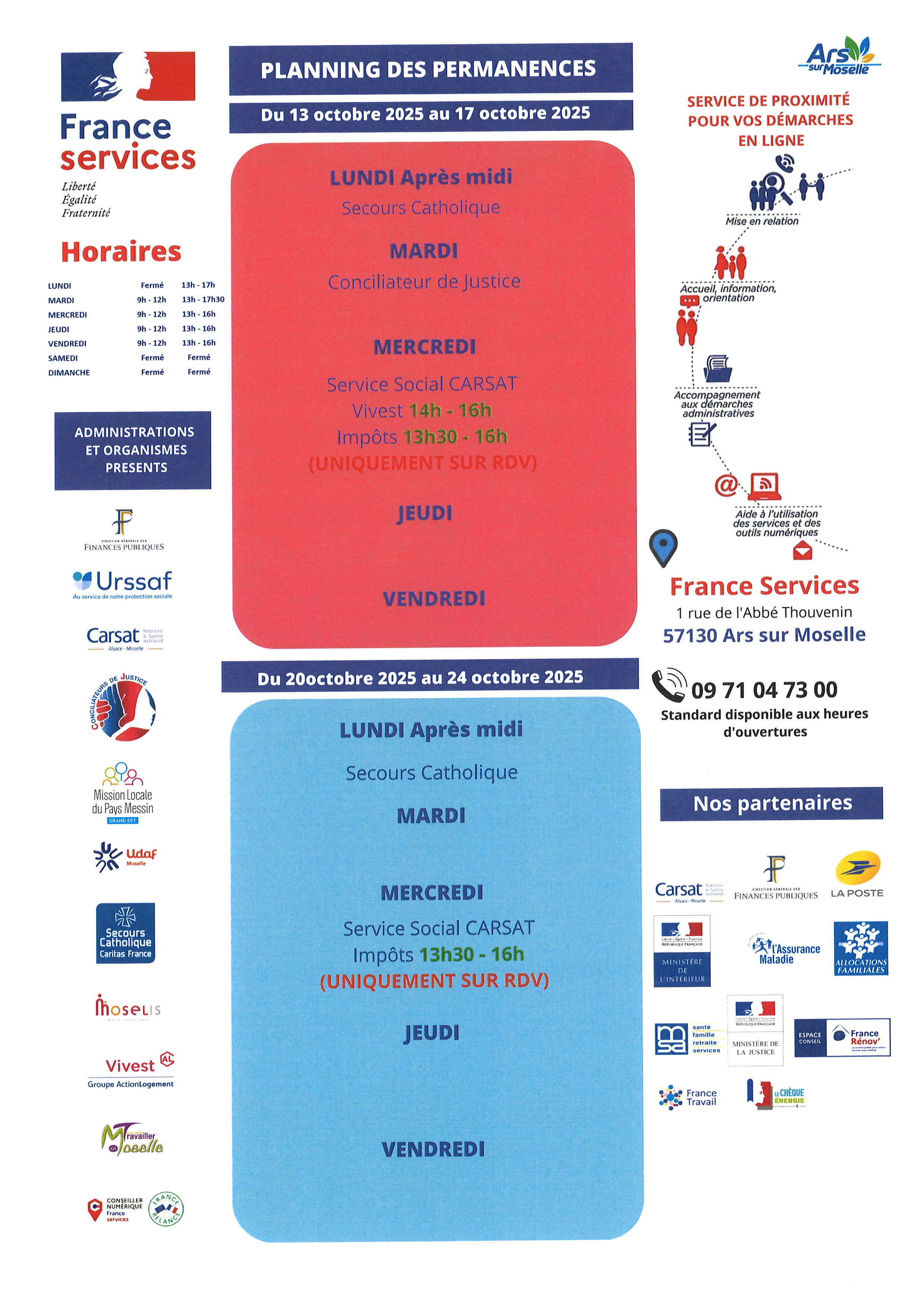 PLANNING DES PERMANENCES du 13 au 24 octobre 2025