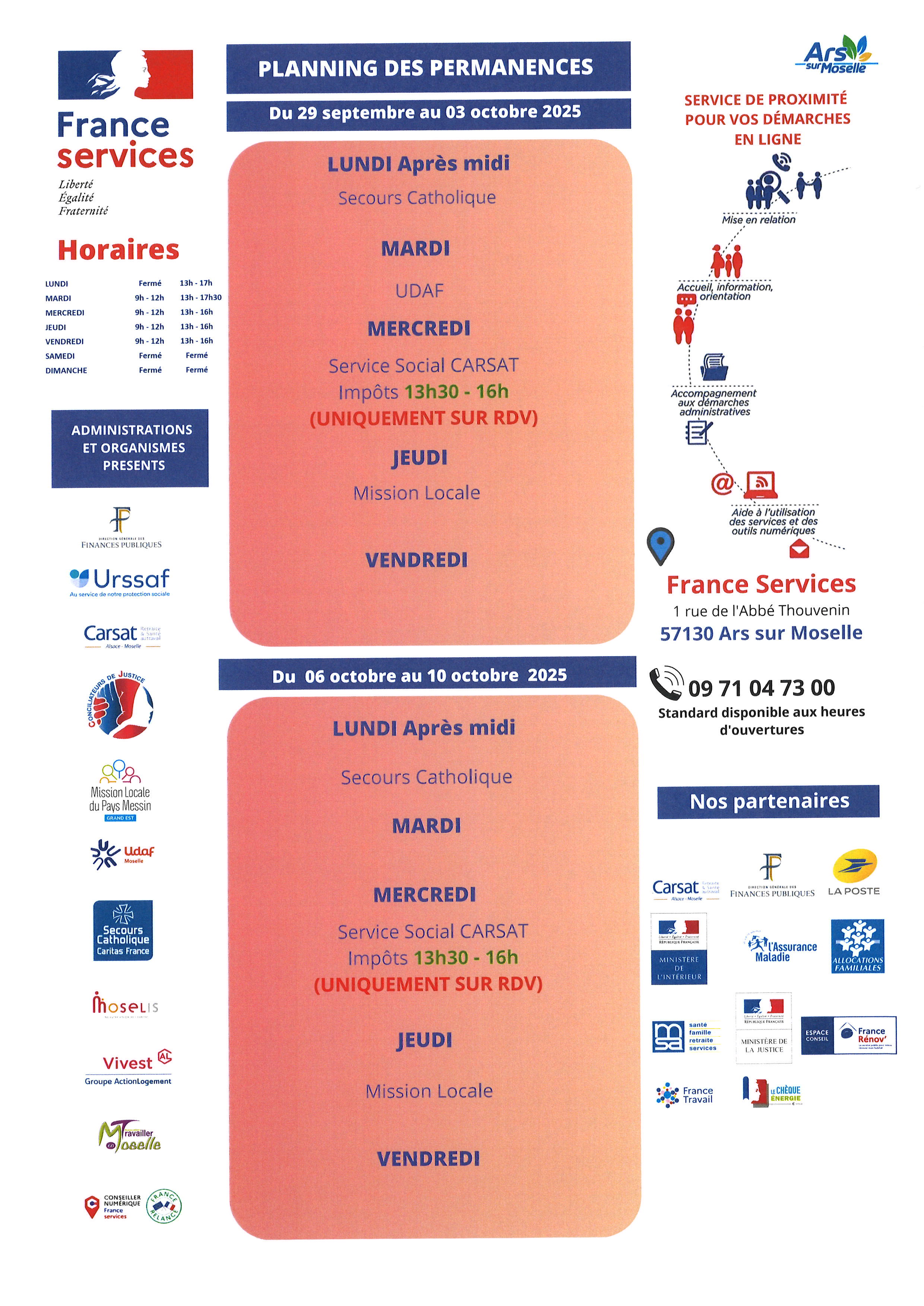 PLANNING DES PERMANENCES du 29 septembre au 10 octobre 2025