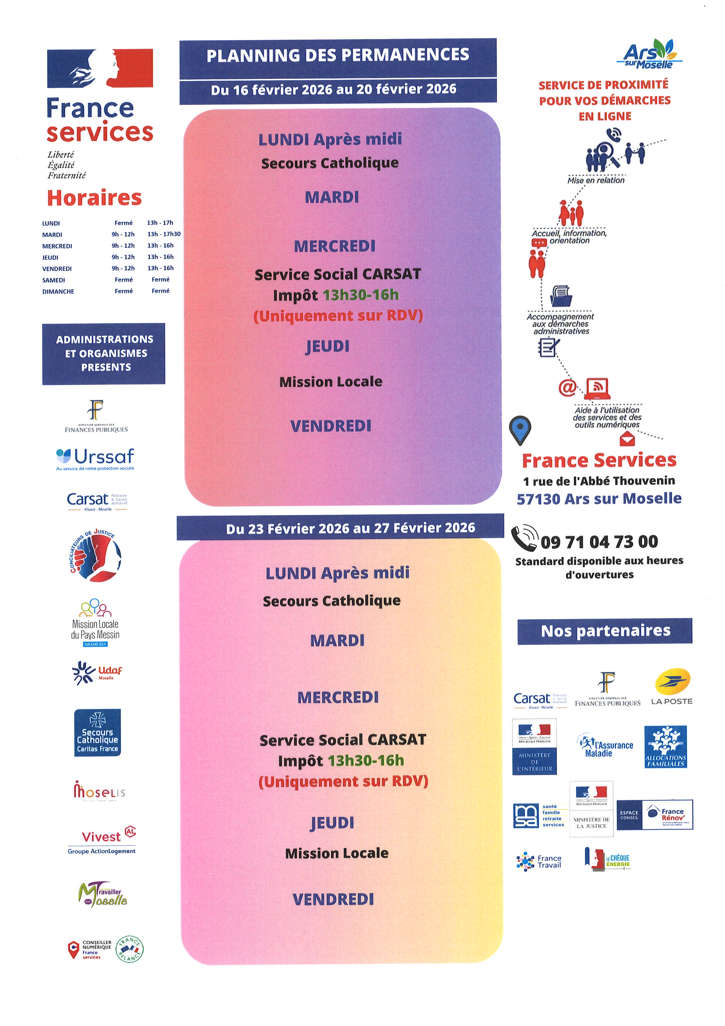 PLANNING DES PERMANENCES du 16 au 27 février 2026