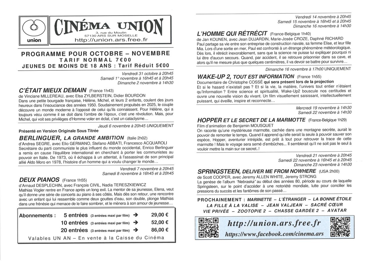 Programme cinéma OCTOBRE-NOVEMBRE 2025